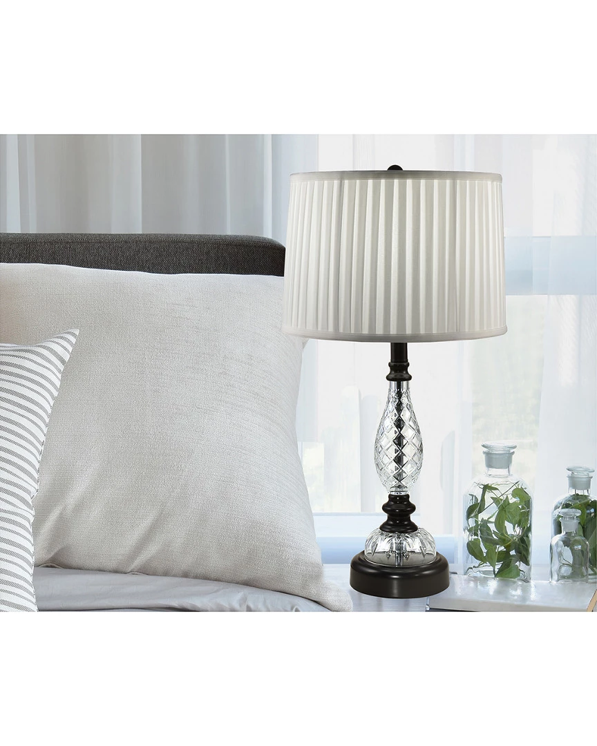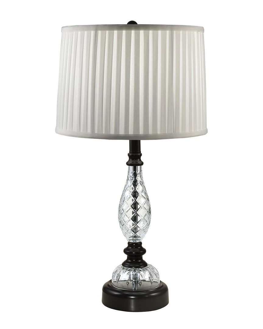 - A delightful combination of traditional style with a modern twist, our Acacia Hand Cut 24% Lead Crystal Table Lamp will easily assimilate into any decor. The lamp features a center column that is encased in a large teardrop crafted of 24% lead crystal. Th