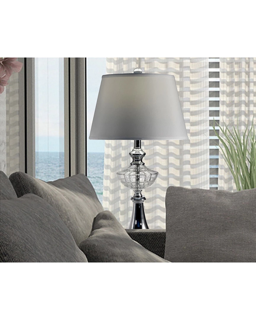 - Base: 24% lead hand cut crystal and metal; polished chrome finish