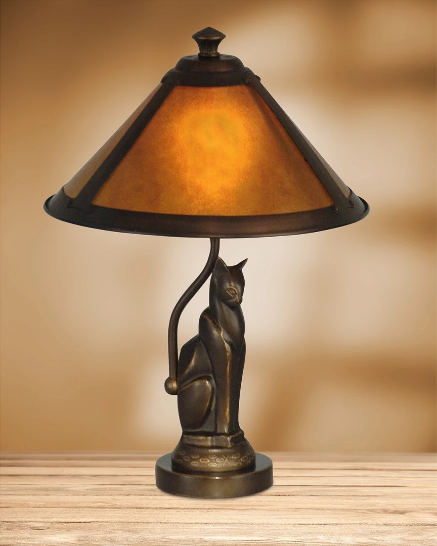 - Whether or not you are a cat lover, add a touch of feline grace to any room in your home with this delightful accent lamp from our Classic Mica Collection. A cone shaped shade in lustrous deep amber mica sits atop a round pedestal base, finished in antiqu