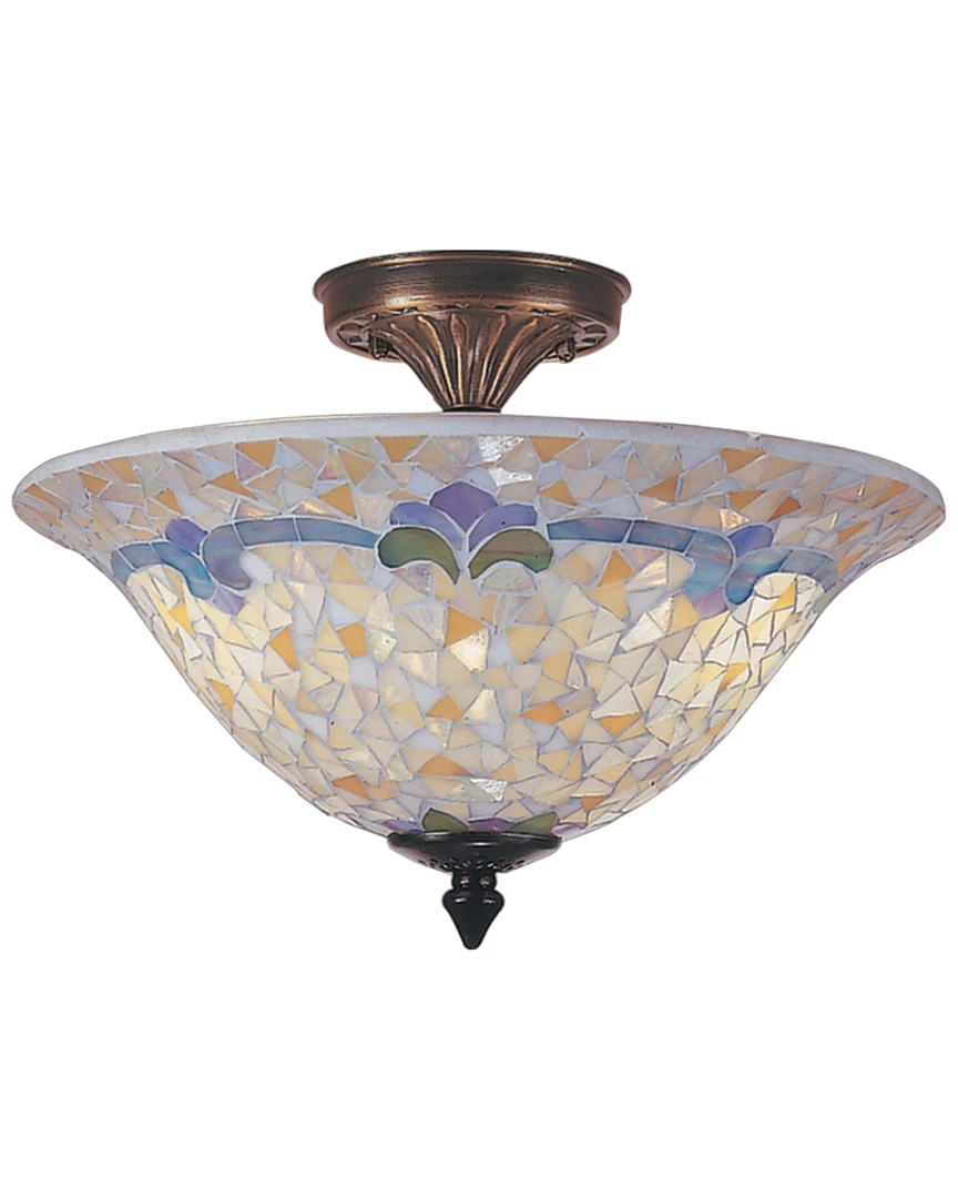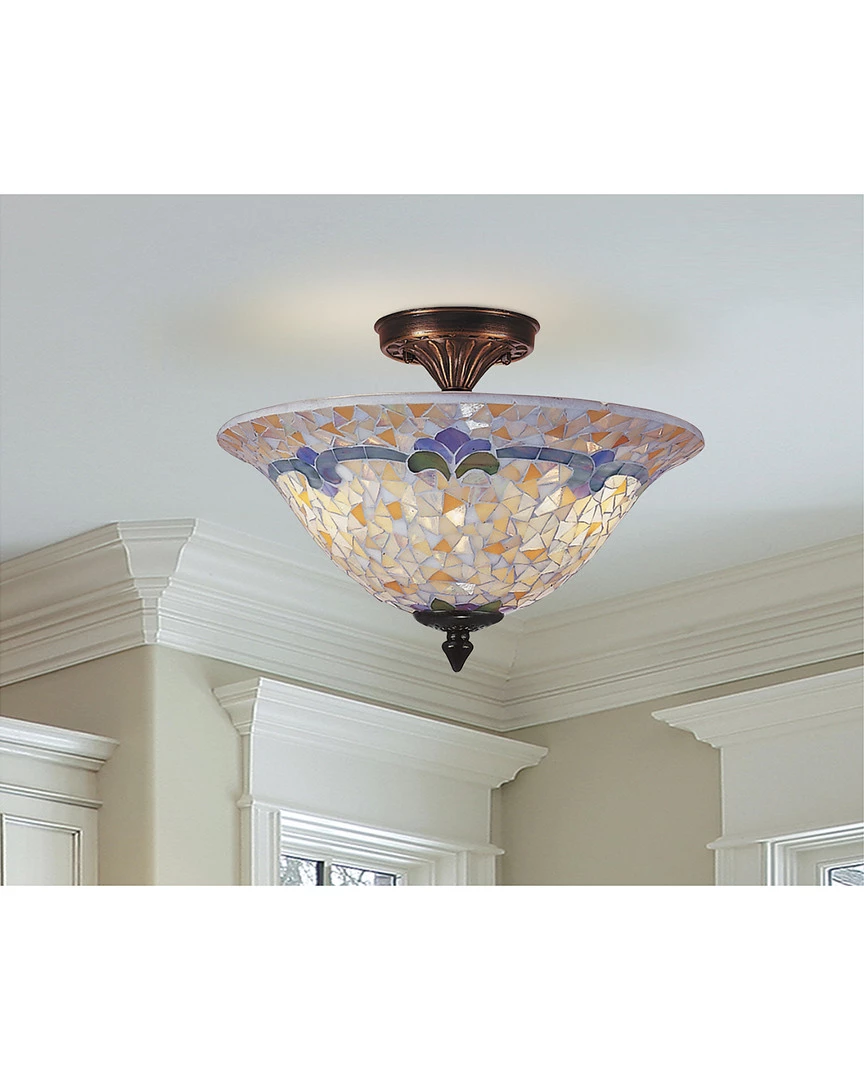 - The delicate and understated tones of our Johana Mosaic Semi-Flush Mount fixture will add a gentle pop of color to any decor style. The inverted bowl shade features a background of muted white, grey, yellow and light amber pieces set in a mosaic pattern.