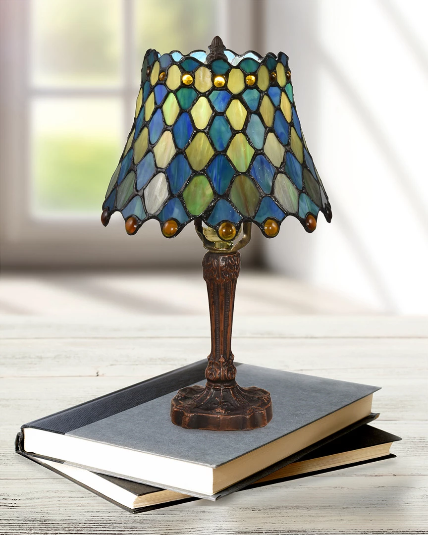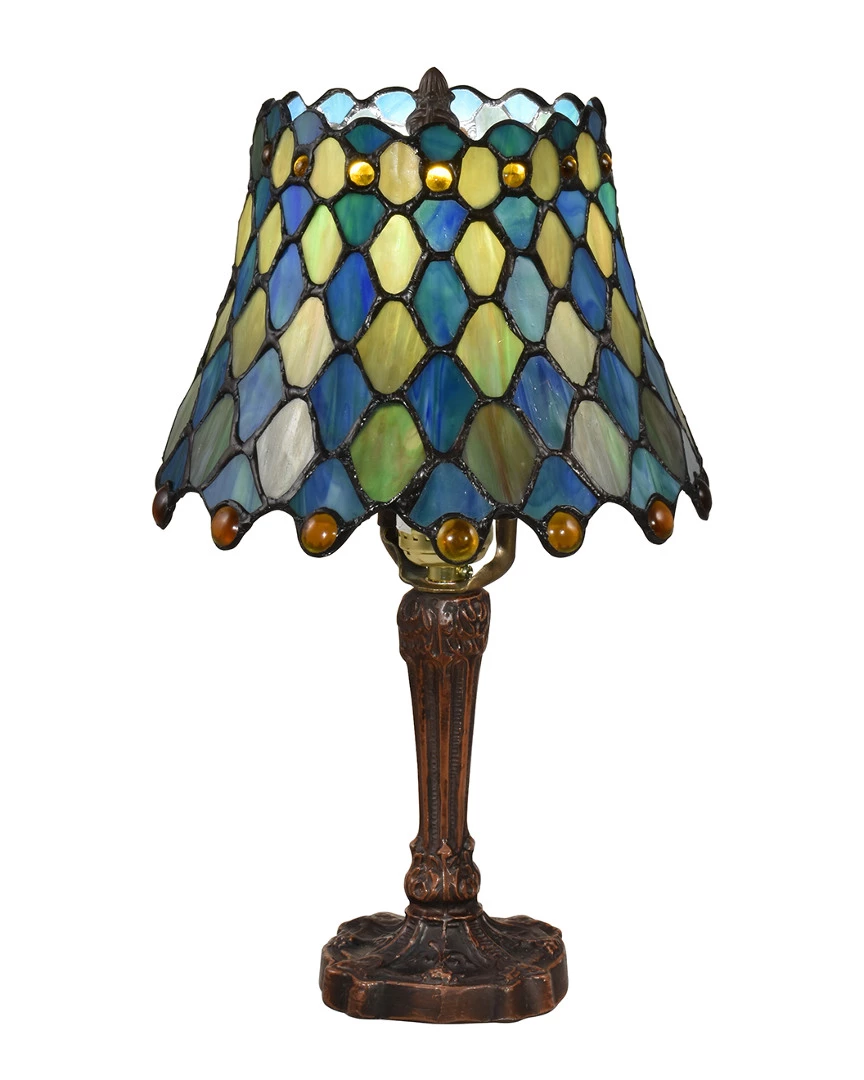 - Our lovely Maile Tiffany Accent Lamp is an easy way to add a splash of soothing color to any room in your The lamp features a flared shade crafted of art glass pieces in woven pattern of iridescent green, deep blue, and amber that will cast a glow of vibr