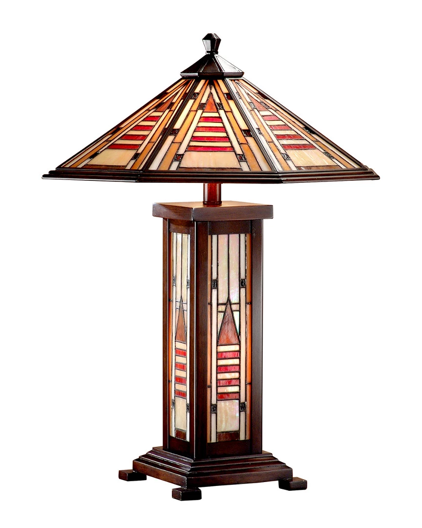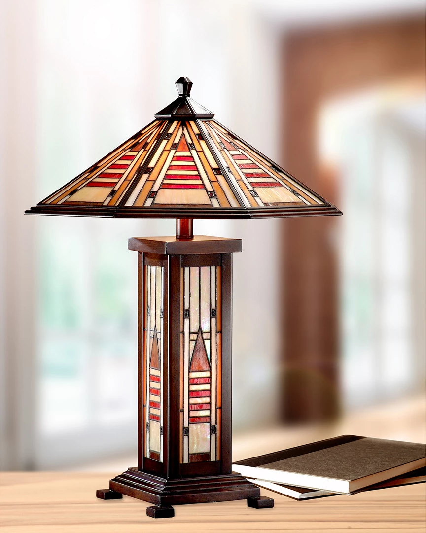 - Our Woodruff Table Lamp brings classic the Mission style into the 21st Century and beyond. The bright lamp features a large conical shade crafted of art glass triangles, rectangles, and squares in variegated amber tones that are guaranteed cast a rich, wa