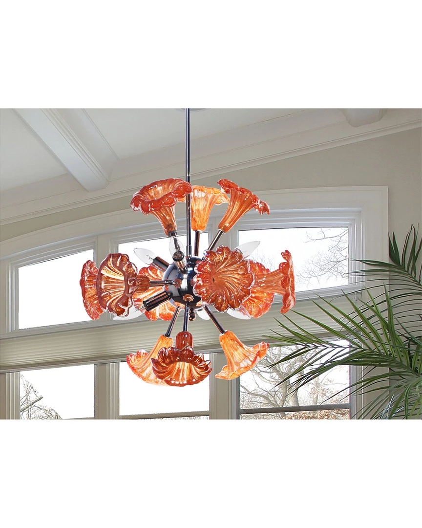 - Our fabulous Yuri Orange 6 LT Hanging Fixture is a dazzling addition to any decor style in your home. The fixture features a round metal base, finished in gleaming Polished Chrome that is hung from a matching metal support tube. A series of 12 large Hand